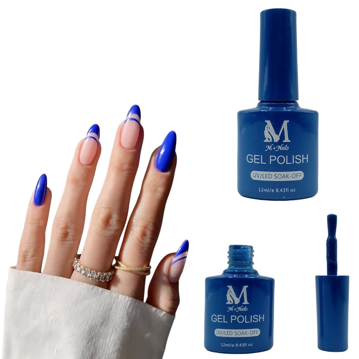 Gel polish UV/LED, color medium blue, soak off. M+Nails.