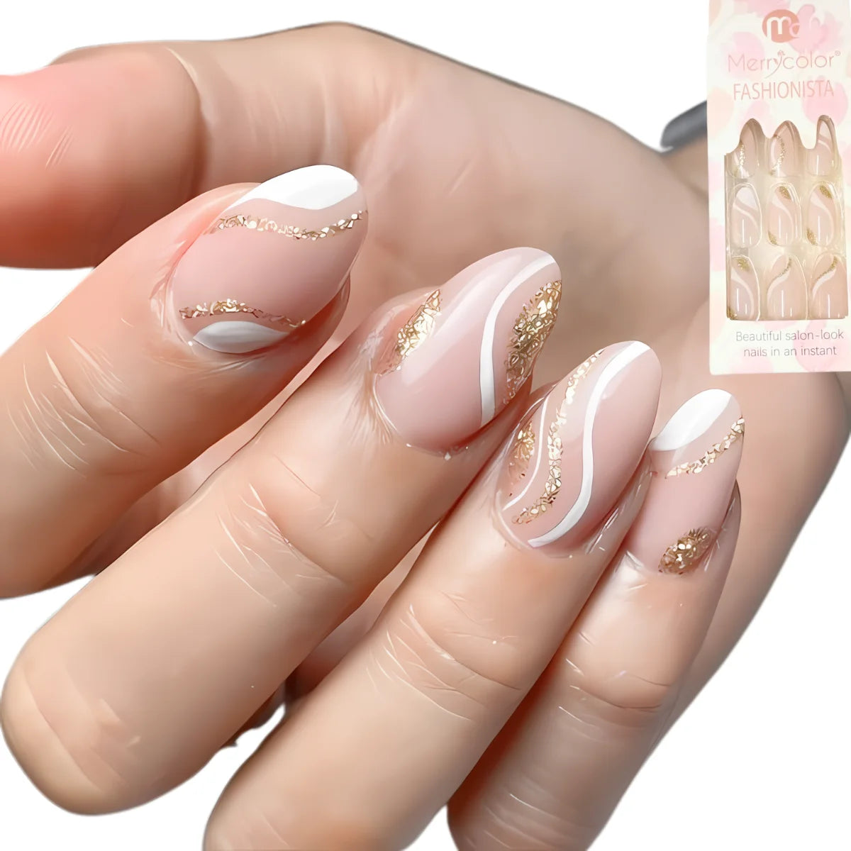 3. Método de pegado de cinta de doble cara: elija un tamaño adecuado, péguelo en la superficie de la uña y cubra la lámina de la uña postiza de la parte superior del dedo.