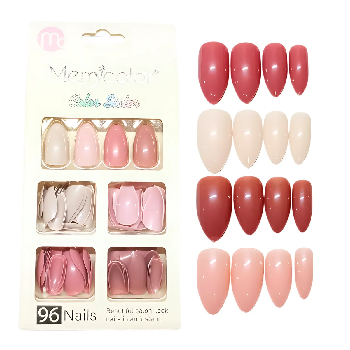 Juego de uñas postizas Merry Color, colores con forma de almendra en estilo Stiletto